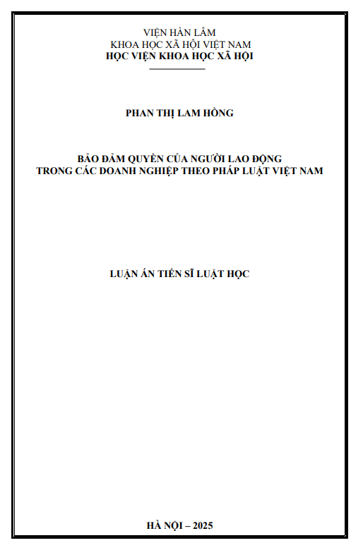 Trân trọng giới thiệu Luận án Tiến sĩ: "BẢO ĐẢM QUYỀN CỦA NGƯỜI LAO ĐỘNG TRONG CÁC DOANH NGHIỆP THEO PHÁP LUẬT VIỆT NAM" của tác giả Phan Thị Lam Hồng