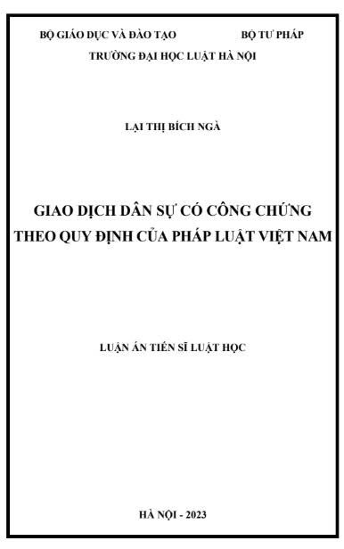 Trân trọng giới thiệu Luận án Tiến sĩ: GIAO DỊCH DÂN SỰ CÓ CÔNG CHỨNG THEO QUY ĐỊNH CỦA PHÁP LUẬT VIỆT NAM của tác giả Lê Thị Bích Ngà