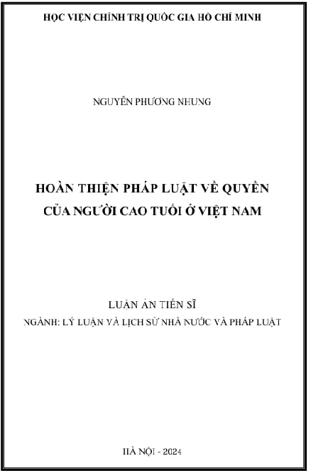 Trân trọng giới thiệu Luận án Tiến sĩ: "HOÀN THIỆN PHÁP LUẬT VỀ QUYỀN CỦA NGƯỜI CAO TUỔI Ở VIỆT NAM" của tác giả Nguyễn Phương Nhung