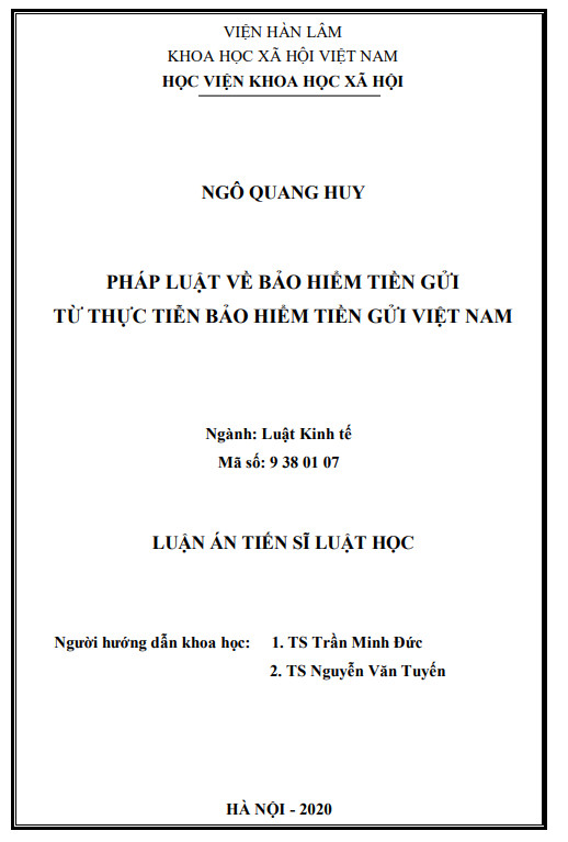 Trân trọng giới thiệu Luận án Tiến sĩ: PHÁP LUẬT VỀ BẢO HIỂM TIỀN GỬI TỪ THỰC TIỄN BẢO HIỂM TIỀN GỬI VIỆT NAM của tác giả Ngô Quang Huy
