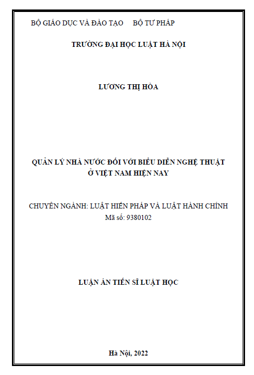 Trân trọng giới thiệu Luận án Tiến sĩ: QUẢN LÝ NHÀ NƯỚC ĐỐI VỚI BIỂU DIỄN NGHỆ THUẬT Ở VIỆT NAM HIỆN NAY của tác giả Lương Thị Hoà.