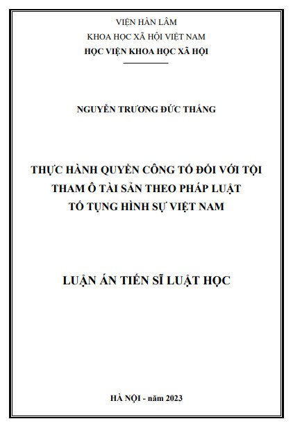 Trân trọng giới thiệu Luận án Tiến sĩ: THỰC HÀNH QUYỀN CÔNG TỐ ĐỐI VỚI TỘI THAM Ô TÀI SẢN THEO PHÁP LUẬT TỐ TỤNG HÌNH SỰ VIỆT NAM của tác giả Nguyễn Trương Đức Thắng