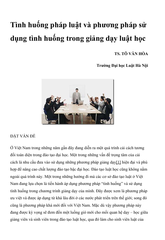 Trân trọng giới thiệu: "Tiểu luận: Tình huống pháp luật và phương pháp sử dụng tình huống trong giảng dạy luật học" của PGS.TS Tô Văn Hòa